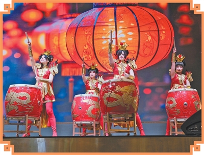 2月12日,俄罗斯中国总商会在莫斯科举办第三届“元宵喜乐会”活动。图为俄罗斯 青年表演中国鼓乐。 |