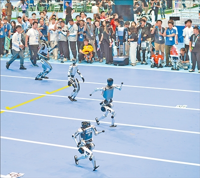 图为机器人在开幕式上开展100米赛跑。 |